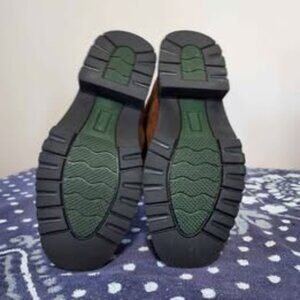 Pink with crazy horse leather upper, welted construction, slip and oil-resistant outsole, square toe design and saddle vamp.