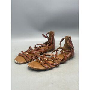 Elevate your style with these chic gladiator sandals. Featuring a back zipper for easy wear, they are crafted in rich brown with stunning embellishments. Designed for comfort and fashion, these size 8 sandals are perfect for any occasion.