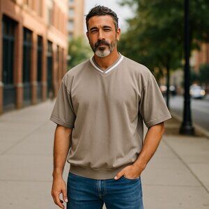 glen Echo Tan Pullover Lined V-Neck Short Sleeve Golf Windbreaker Size XL