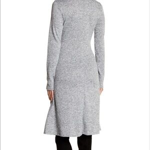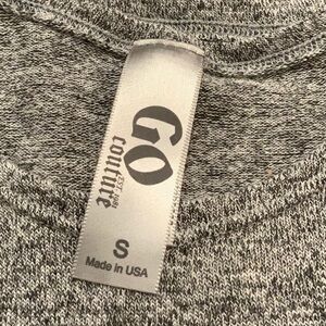 Go Couture grey heather, tie front dress. Crew neck, long sleeves, waist tie accent. knit construction.