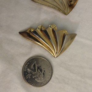 Gold fan earrings, vintage in good condition. Quarter for size reference.