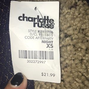 never worn with tags, gold and navy bodysuit! long sleeve with cute cutouts on the top!