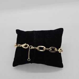 Gold tone chain bracelet with oversized linkages. In good used condition. Approximately 7.75" with a 0.75" extender.