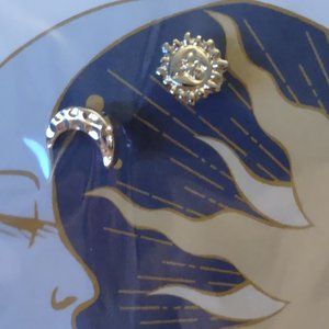 gold tone sun and moon earrings on a card - very cute!
