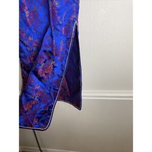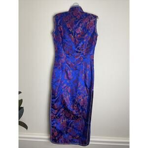 golden dragon, blue Asian Print Slit midi dress, Size 2-4