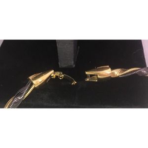 gold-tone & black twisted long stamped / signed Mo