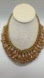 This is a gold-tone chain necklace with a cascade of peach-colored, faceted glass teardrop beads.