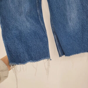 good american Cropped high waisted blue distressed bottom jeans size 6 / 28
