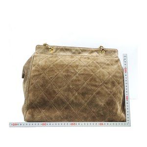 good condition Authentic Large Chanel Hand Bag Brown Suede Leather jumbo tassel