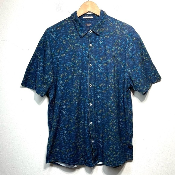 Men’s Good Man Brand 100% Cotton Shirt, sz Medium. Welcome the warmer weather with this stylish button up short sleeved shirt in a great navy print in a regular fit.