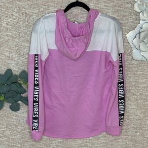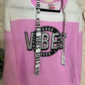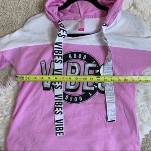 Super cute and on trend athlesuire wear. Thick printed drawstrings, oversized fit. In great condition with a couple of very tiny spots as shown in photos. Size medium juniors.