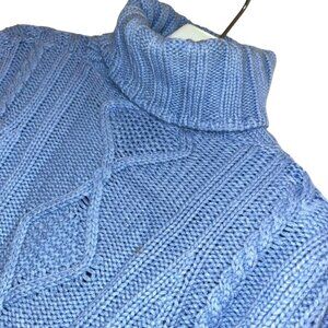 gorgeous cornflower blue aran cable knit irish fishermans turtleneck sweater M
