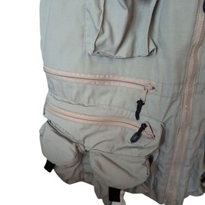 gorpcore Khaki Utility Vest with Multiple Pockets Machu Picchu Embroidered Sz M