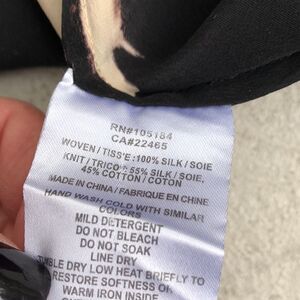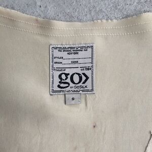 Super comfortable fun top, oversized, colors are as pictured. Body of the shirt is silk and the sleeves are a tightknit silk and cotton blend. gobysilk label