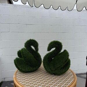 Green topiary swans for your garden #gardendecor #topiary