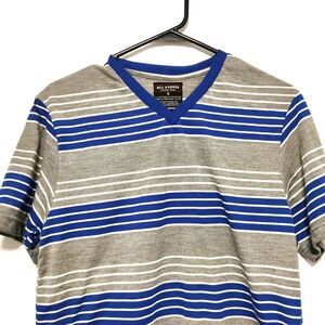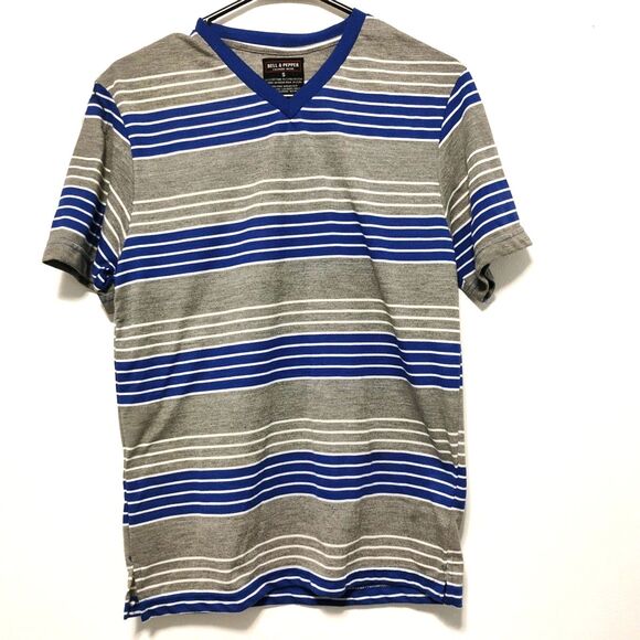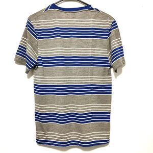 gray Blue Striped Shirt Men's Large Short Sleeve Pullover Lightweight logo drift