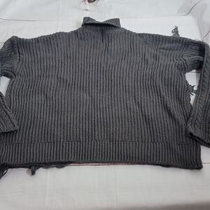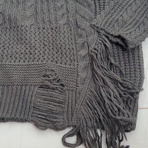 gray Free Generation Destructed Fringe Sweater with adorable details siz…