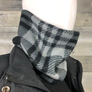gray and black Plaid Tartan gaiter neckwarmer fleece Scarf Tube Earmuff cowl