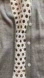 gray cardigan sweater with a white, eyelet-patterned fabric lining the back