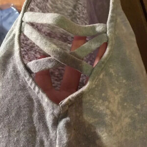 Gray and white marbled crop top with chris cross sides and low cut back. Never worn tags only removed