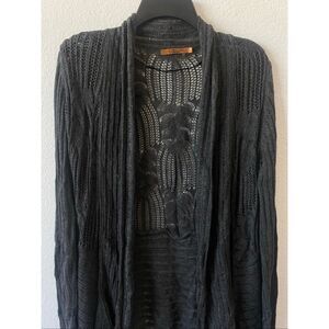 gray open-knit crochet cardigan size l