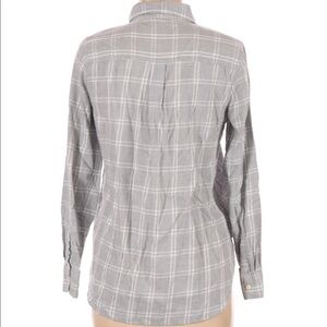 Classic and comfortable long sleeve gray and white plaid button down 88% cotton, 12% polyester