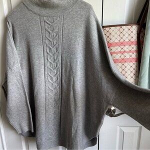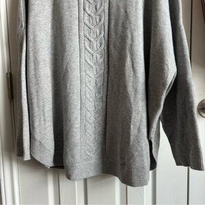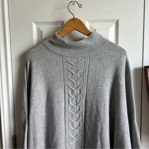 gray soft cable knit high collar mock neck neutral minimalist sweater