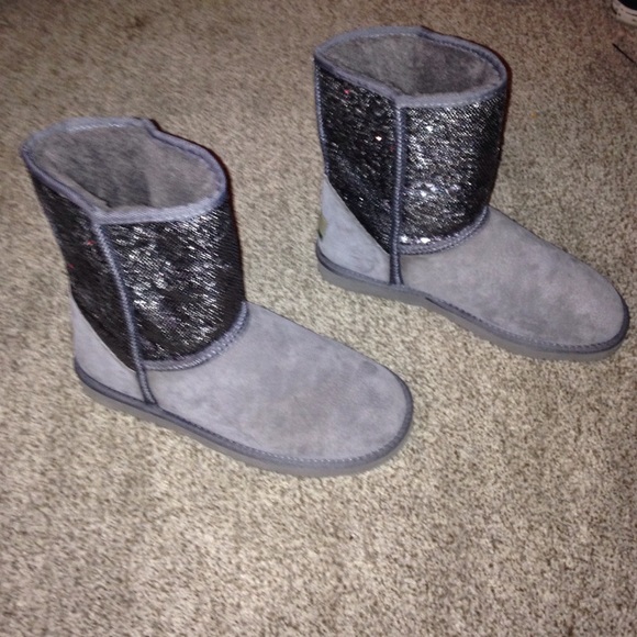 gray sparkly boots, look like uggs but they're not