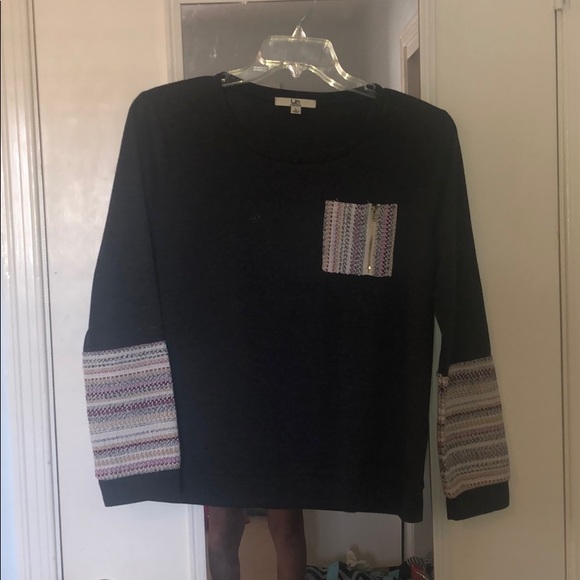 gray sweater with aztec print on the pocket and bottom of the sleeves. perfect for a cute casual look
