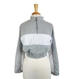 gray & white cropped mock neck quarter zip sweatshirt half zip sweater elastic