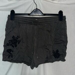 gray with black floral embroidery drawstring Knox Rose shorts size medium