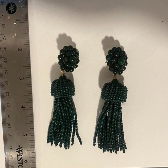 green beaded tassle earrings