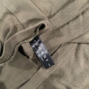 moss green v-neck blouse with half sleeves and ruching at bottom seams