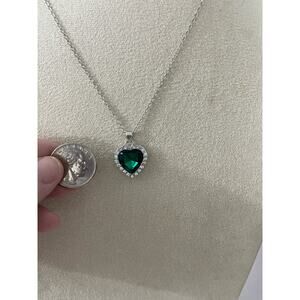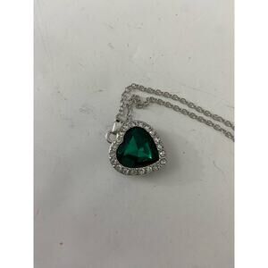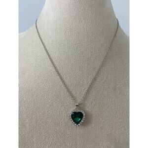 Gorgeous green rhinestone heart necklace silver tone new minimalist princess great for holidays going out parties work vacation gifting old Hollywood 50s housewife twee streetwear glam