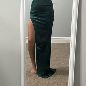 Silk long green dress with a slit leg and spaghetti straps. I only wore once.