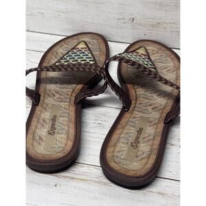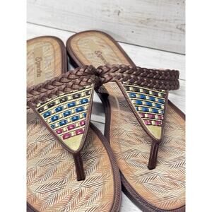 grendha women's silvestre bronze and jeweltone colored thong flip flop EUC 9