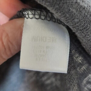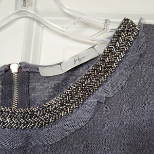 Gibson short sleeve top. Charcoal grey. Beaded neck detail. Back neck zipper. Somewhat sheer fabric. Size Medium.