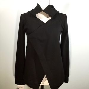 60% polyester, 40% cotton black open face hoodie, new with tags, XS petite, no flaws