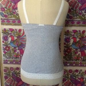 super cute grey and lace tank! never been worn, and would love for this top to go to someone who can wear it. Sadly, I outgrew it not too long after I bought it.