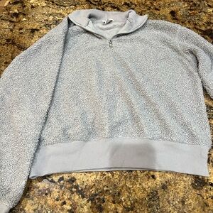 grey quarter zip pullover with teddy bear material