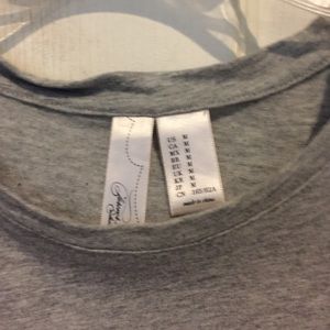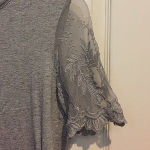 never worn Grey shirt with lace sleeve, I wouldn't say it is cropped but it is a shorter shirt. would look super cute with high waisted shorts :)