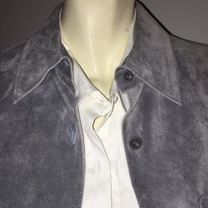 Sigrid Olsen grey suede button down shirt/jacket. Button cuffs, one front pocket & vents on the side seams. Size xs. 100% suede. Excellent shape. Never worn. New without tag ✨pictured with Catherine Malandrino top size 8 and navy pinstriped jeans size 28. Both in closet for bundling! ✨ (mannequin has 34" bust, for reference)