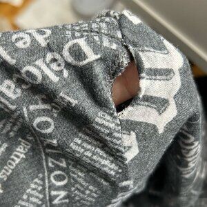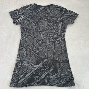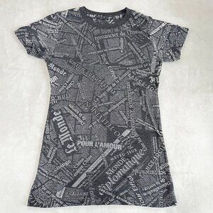 grey y2k style graphic all over print newspaper baby tee shirt top • size s • no