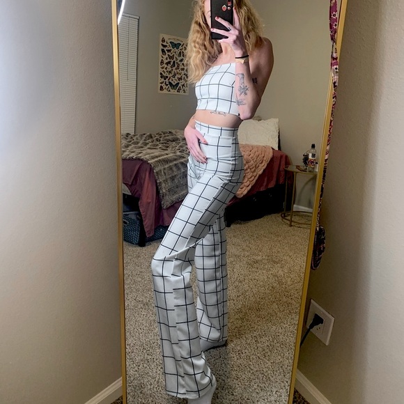Take a Picture pant set black and white flannel grid . Matching two piece set. Perfect condition. Wore it once to an interview. It is a SUPER soft and comfy fabric. And is so flattering on the body. They no longer sell the white set online