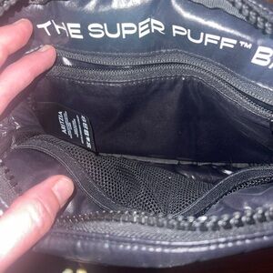 black puffy fannypack in good used condition. zippers all work