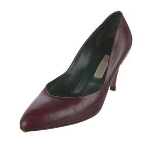 gucci authentic Genuine Leather Solid Red Burgundy Vintage Heels Pumps 6 Italy