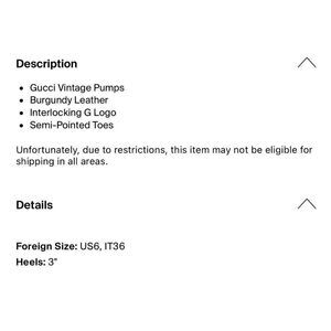 These Gucci authentic red burgundy vintage heels are a stylish and timeless addition to any woman's wardrobe. Made from genuine leather with a solid pattern, these pumps exude elegance and sophistication. Crafted in Italy, these heels are designed for a perfect fit and are sure to make a statement with their stunning red color. Perfect for adding a pop of color to any outfit, these Gucci heels are a must-have for any fashion-forward woman.