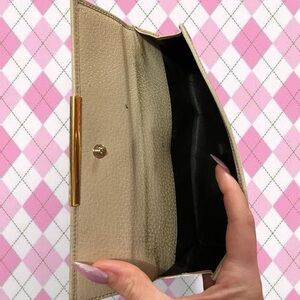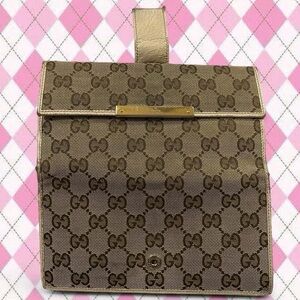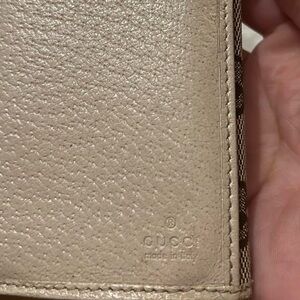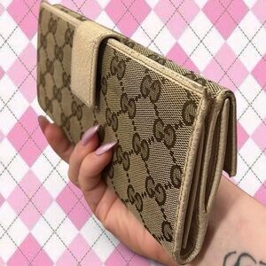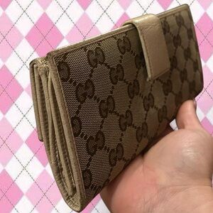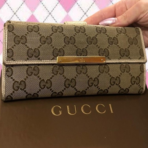 gucci brown and tan GG canvas continental wallet with gold hardware