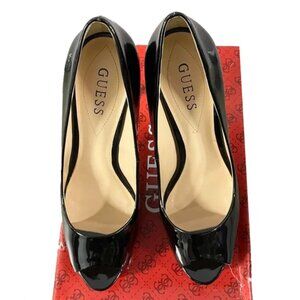 guess | black patent leather open peep toe platform high heel stiletto pumps