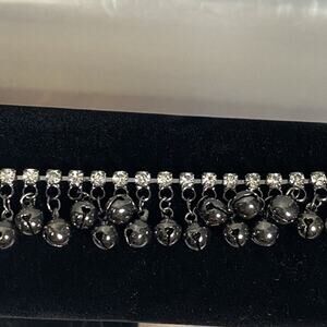 gunmetal silver colored chain and rhinstone dangle bracelet. 8.25” adjustable